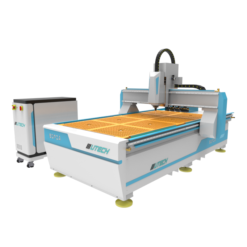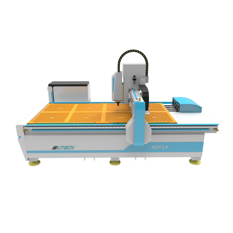 The UTECH SOFIA 1325 CNC router is designed for wood, MDF, plywood, particle board, acrylic, PVC, and soft aluminum, making it ideal for furniture, cabinetry, signage, and decorative carving.
