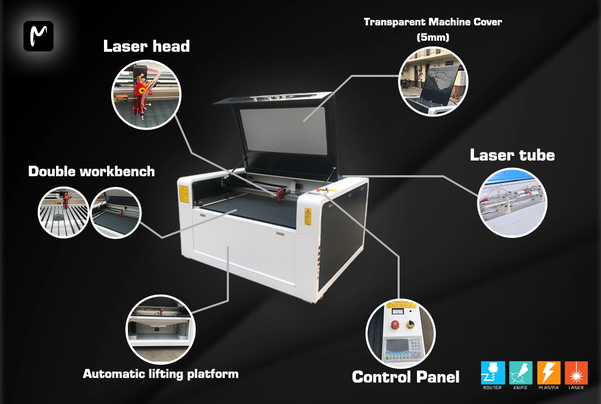 Laser power (watts): Typically ranges from 40W to 300W. Higher power allows for deeper cuts and faster speeds.